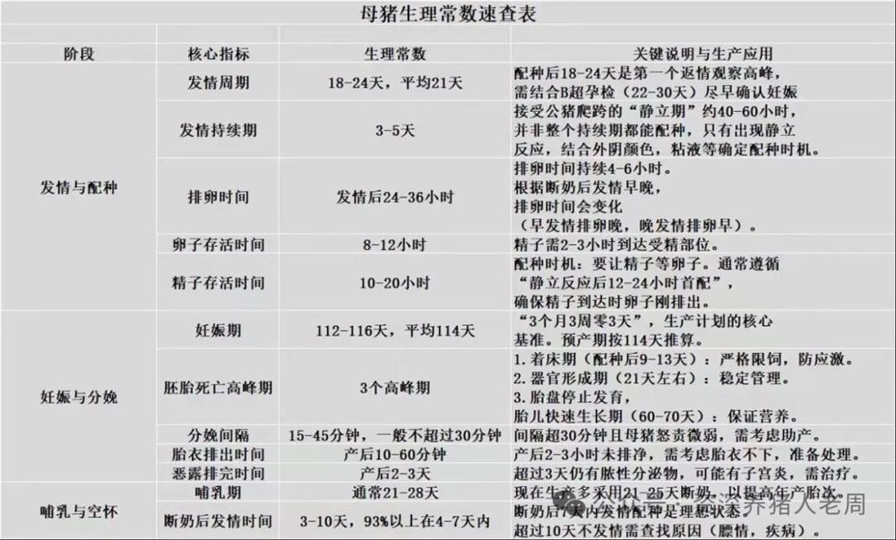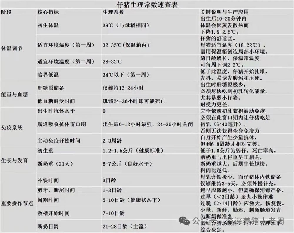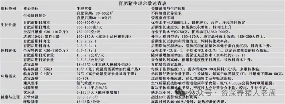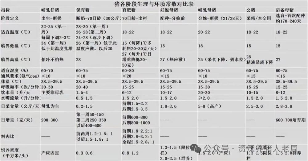 各阶段猪只生理常数速查手册