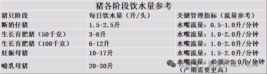 九、各阶段猪只饮水量参考